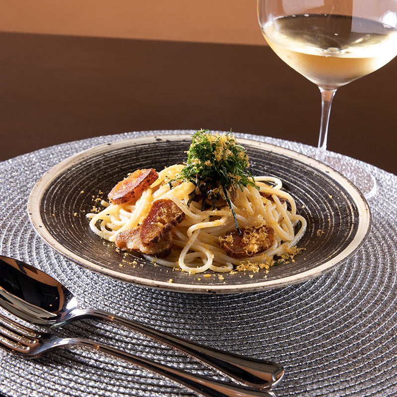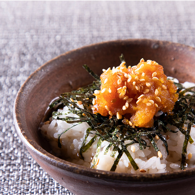 レアからすみは、通常のからすみよりも塩気が少なく、柔らかい味わいですので、まずは厚切りで贅沢お召し上がりください。白ごはんとの相性も抜群です。また炙ってパスタにのせたり、ほぐしてお茶漬けにしても美味しいです。