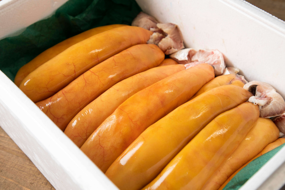 クラウドファンディングで500%以上の支援を集めたレアからすみ、是非一度お召し上がりください。